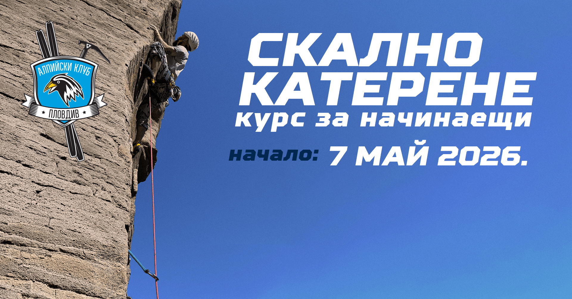 Алпийски клуб Пловдив организира курс по скално катерене за начинаещи за 2026 година.